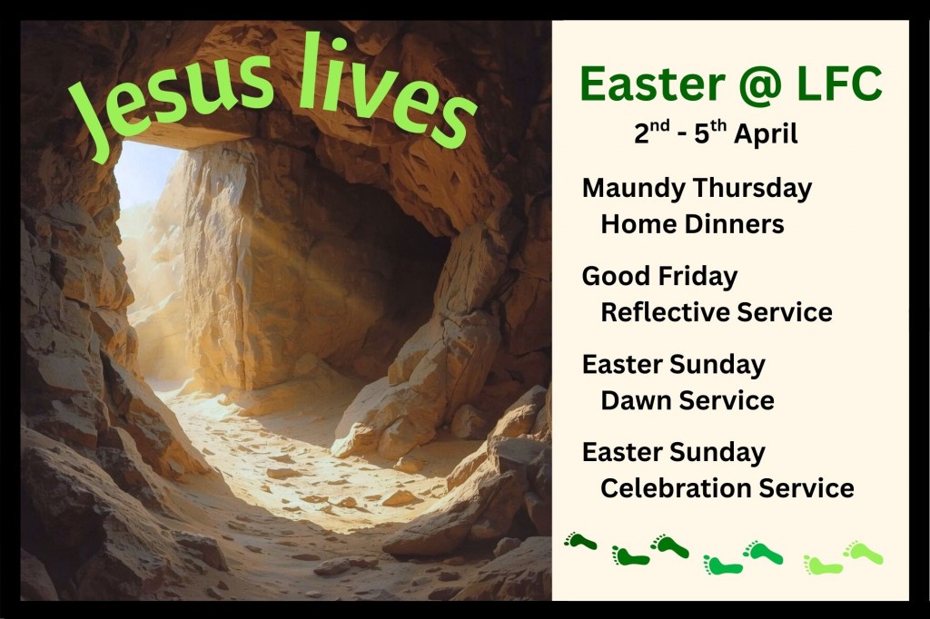 On Good Friday, we will start our service at 9.30am and spend the morning in a quiet reflection. This service will be simple yet meaningful to those looking at what Easter means to them.